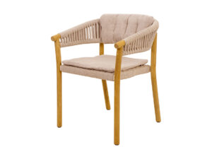 De Marcella dining chair in flat rope Linen uitvoering behoudt alle kenmerken van het oorspronkelijke ontwerp. De combinatie van massief teak, aluminium en rope zorgt voor een sterke, duurzame en tegelijkertijd lichte constructie.